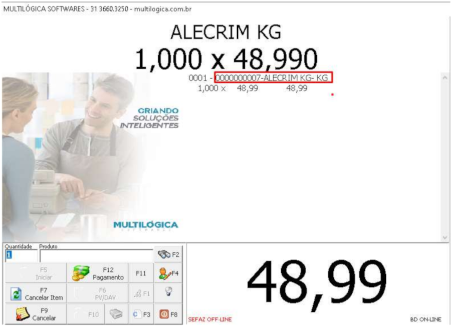 5) Tela de venda com o produto registrado: