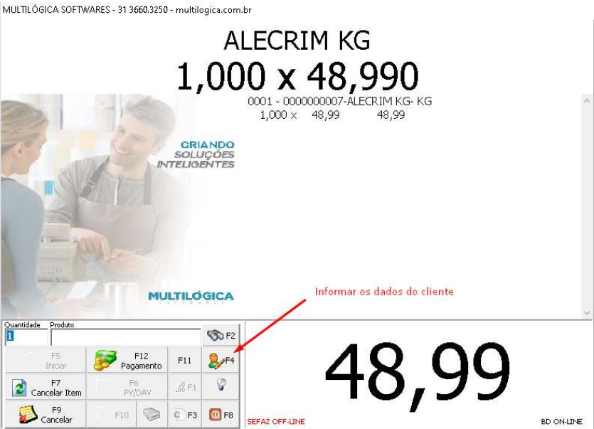 6) Para informar os dados do cliente, clique no botão F4 (com o desenho de um boneco):